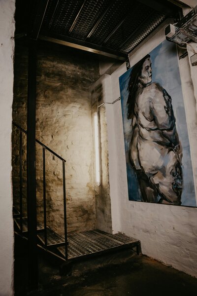 Painted in a converted olive press on the outskirts of Gordes, She Took the Room With Her captures the final moment before disappearance. The woman, turned away but fully present, leaves no trace except what the wall remembers. Broad strokes of ultramarine press against the outline of a shoulder barely contained, while dry charcoal defines the weight she carries. There’s no softness here. No apology.